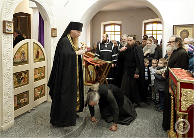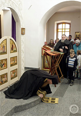 Вечерню с чинопоследованием прощения возглавил благочинный монастыря, а перед целованием креста отец Авель произнес проповедь о покаянии и духовном делании каждого христианина, вступающего на поприще Великого поста.