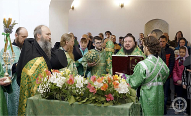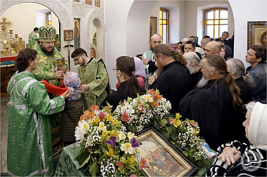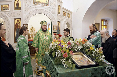 Его Преосвященству сослужили благочинный монастыря иеромонах Авель (Василенко) и насельники обители в священном сане – иеромонахи Иларион (Чистяков) и Андрей (Данилов).