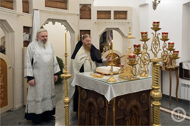 Богослужебные песнопения в древней знаменной традиции исполнил праздничный монастырский хор.
