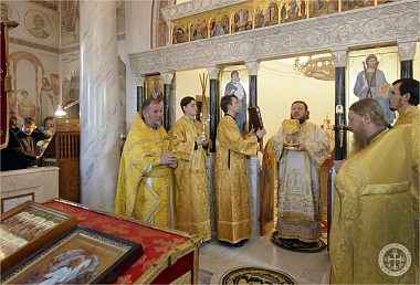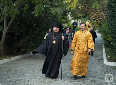 Его Преосвященству сослужили благочинный Инкерманского монастыря иеромонах Авель (Василенко) и иеромонах Иларион (Чистяков).