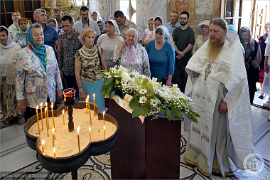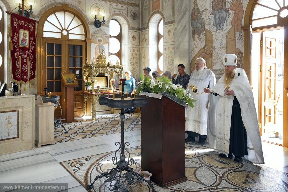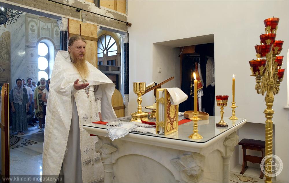В благолепно украшенном цветами Пантелеимоновском храме обители Всенощное бдение и Божественную литургию совершил благочинный Инкерманского монастыря архимандрит Авель (Василенко).