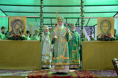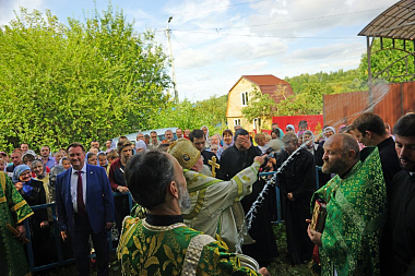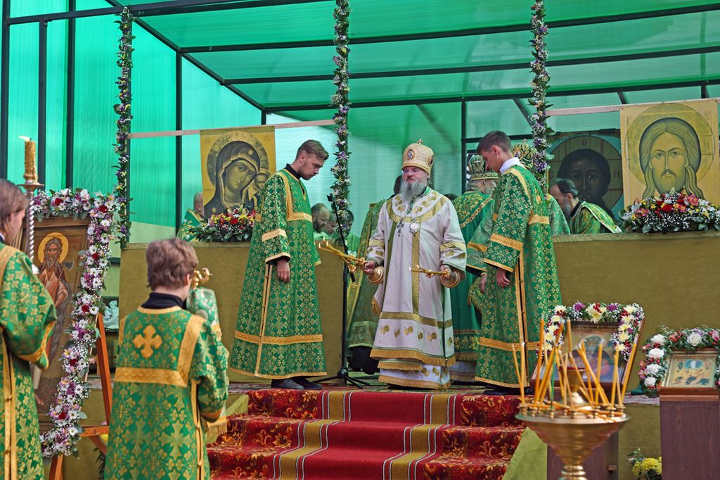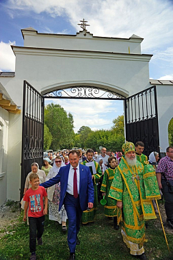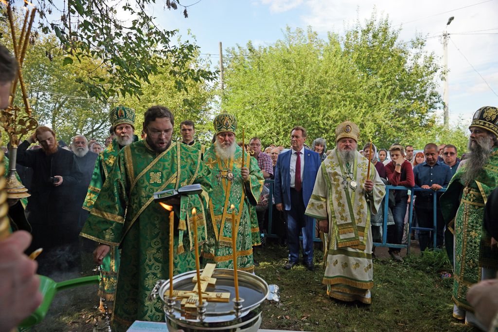 Литургия завершилась крестным ходом на святой источник праведного Лаврентия Калужского, где был отслужен молебен с водосвятием. По преданию, этот источник существует еще со времен святого, и для многих жителей этих мест он являлся «целительным для душ и телес». После освящения архипастыри с молитвой окропили верующих святой водой, призывая на всех благодать Святого Духа и покровительство святого Лаврентия.