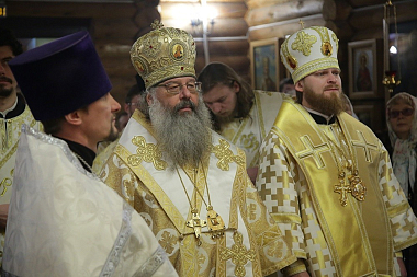 Архипастырям сослужили: секретарь епархиального управления Екатеринбургской епархии иеромонах Кирилл (Корытко), митрофорный протоиерей Феодор Герасимов, духовенство Екатеринбургской и Алапаевской епархий.