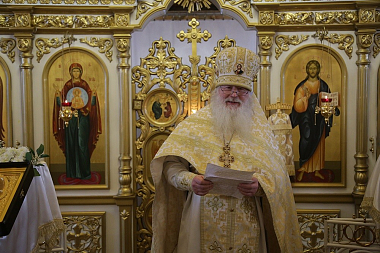 В окончании богослужения митрополит Кирилл поздравил всех с праздниками Рождества Христова, днем памяти 14 000 мучеников и памятью прп. Василиска Сибирского. В своем архипастырском слове владыка обратил внимание на то, чтобы верующие люди прежде всего думали о том, что является для них главным и основным – мнение окружающих людей или слово Бога.