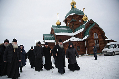 Владыка также выразил благодарность за возможность нахождения в Туринске, одном из самых древних городов Урала и Сибири. На память о совместном богослужении митрополит Кирилл подарил матушке игумении книгу о праведном Симеоне Верхотурском, преподобном Василиске Туринском и священномученике Константине Меркушинском, изданную в 2020 году. Женской обители владыка преподнес в дар благословенный образ Спасителя из святого града Иерусалима, освященный на Гробе Господнем в ноябре 2019 года.