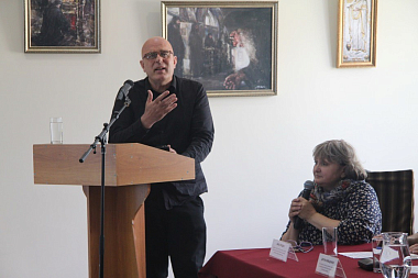 Следующий доклад представил гость из Словении Драган Живадинов, деятель культуры, режиссер, художник и историк. Он признался, что если при создании экспозиции, посвященной Малоярославецкому сражению, ему как историку еще удавалось сохранять методологическую дистанцию, то тема Великой Отечественной войны ему близка лично, так как его семья жила антифашистским духом: его прадед находился в лагере Дахау, его бабушка – в концлагере Аушвице. Новую экспозицию музея Драган Живадинов видит как средство для личного вовлечения посетителей в ближайшее прошлое нашего мира и место встречи Европы с России, в которой Европа нуждается как в лекарстве от фашизма. Люди должны знать об этих войнах, чтобы не допустить их вновь.