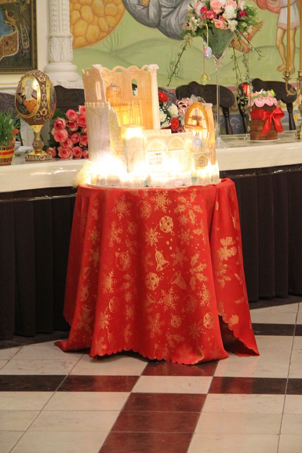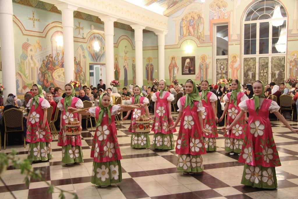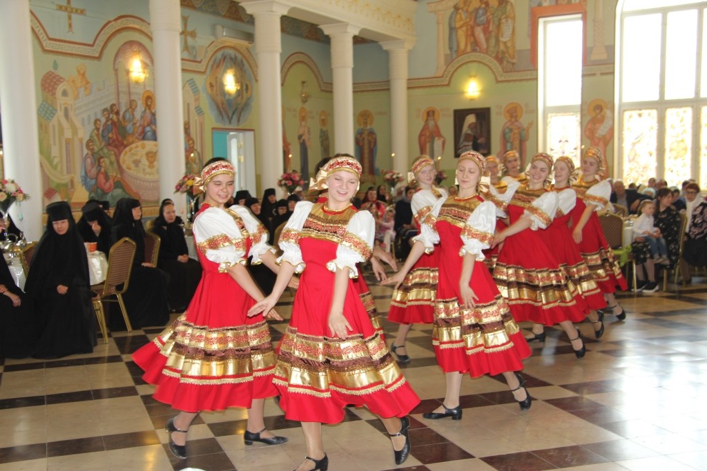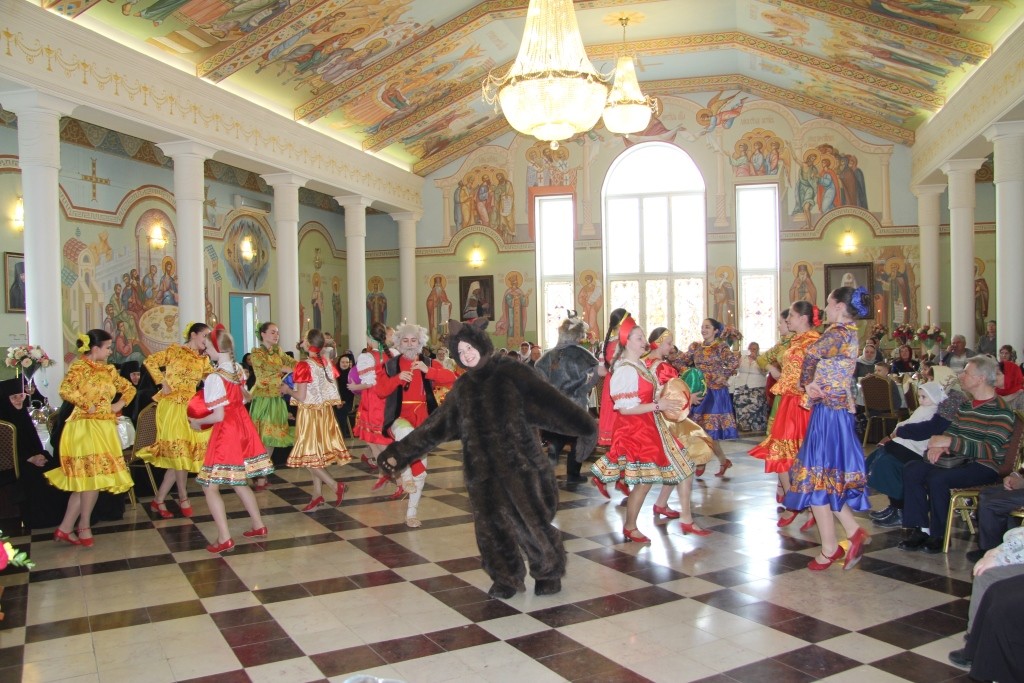 Ночное пасхальное богослужение проходило в переполненном обновленном Никольском соборе, в котором за последний Великий пост прошли реставрационные работы и появились новые святыни. Ночной крестный ход, встреча Благодатного огня у Святых врат монастыря, вход в собор, в котором были потушены все огни, чтобы потом зажечь все светильники от Благодатного огня, радостные крики «Христос воскресе!» в залитом светом храме и затем ночное разговение и первый пасхальный праздничный концерт в большой трапезной обители, закончившийся вручением подарков всем участникам праздника. Утром после поздней Литургии и первого пасхального крестного хода прошли праздничный обед и второй за день концерт воспитанниц детского православного пансиона «Отрада». Оба концерта получились по-настоящему пасхальными, веселыми, яркими, порадовавшими новыми танцами и новыми костюмами – удивительной красоты «царскими» платьями в древнерусском стиле и «казачьими» красочными нарядами для танца «Деревенские посиделки».