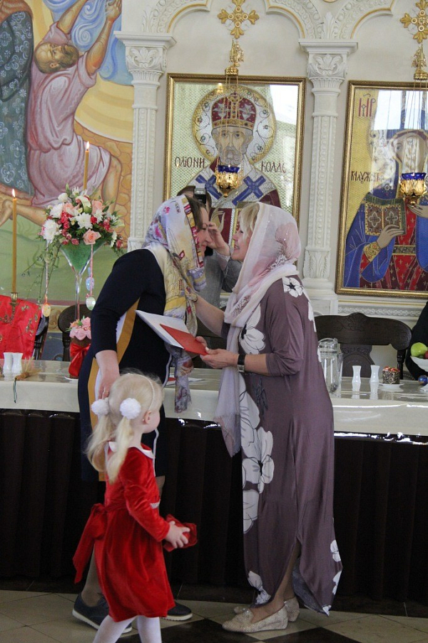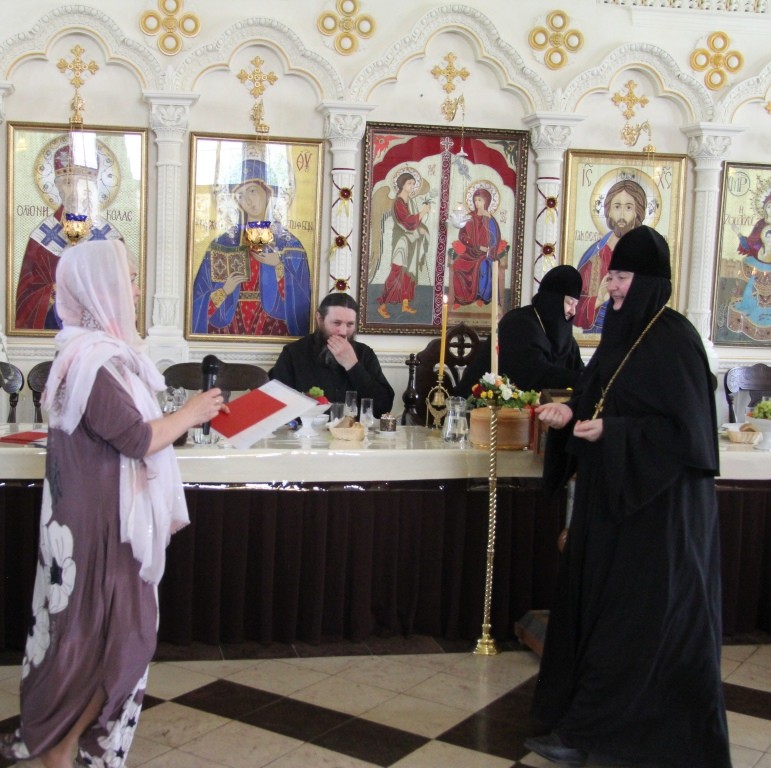 Поблагодарив всех преподавателей ЦПМ и Л.С. Череховскую как директора ЦПМ настоятельница Свято-Никольского Черноостровского женского монастыря игумения Николая вручила ей букет цветов и подарок и предложила всем собравшимся завершить торжество благодарственной молитвой.