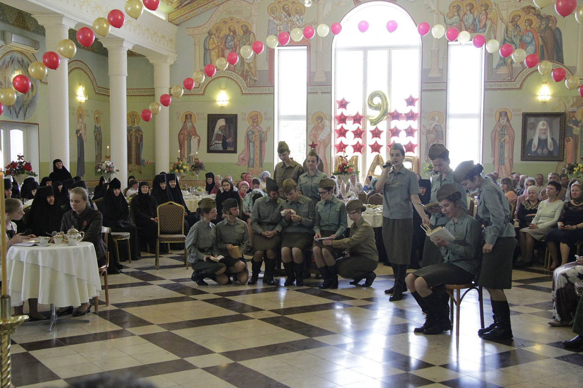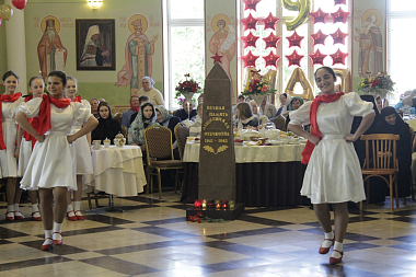 Праздничная трапеза, на которую были приглашены все прихожане и гости монастыря, завершилась праздничным представлением воспитанниц детского православного пансиона «Отрада», посвященным Великой Отечественной войне. К этому представлению в обители всегда особенно готовятся – в прошлом году, например, спектакль-концерт был посвящен детям войны.
