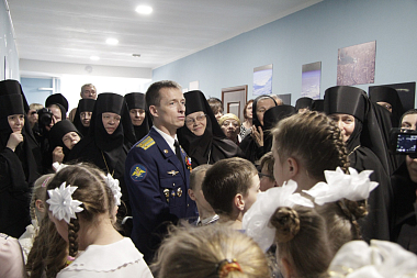 Завершая праздник в Большой трапезной Свято-Никольского Черноостровского женского монастыря, настоятельница обители игумения Николая (Ильина) произнесла духовное слово о значении праздника Победы для нашей страны как победы Духа и пригласила участников торжества в Духовно-просветительский центр «София» на открытие выставки фотографий космонавта-испытателя С.Н. Рыжикова, сделанных из космоса.