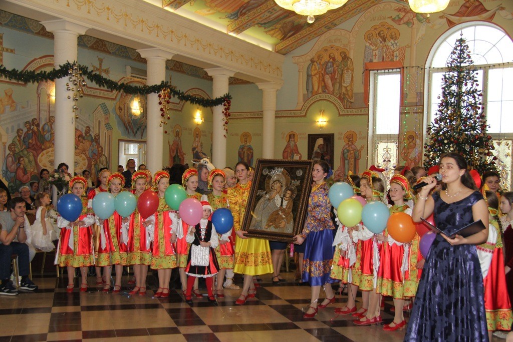 В завершение концерта ведущие, а затем и настоятельница монастыря игумения Николая (Ильина) выразили благодарность за этот замечательный подарок монастырю и приюту – Афонский образ Пресвятой Богородицы «Отрада и Утешение», – который теперь украшает Никольский собор обители и к которому воспитанницы «Отрада», сестры, паломники, гости спешат с молитвами и просьбами.