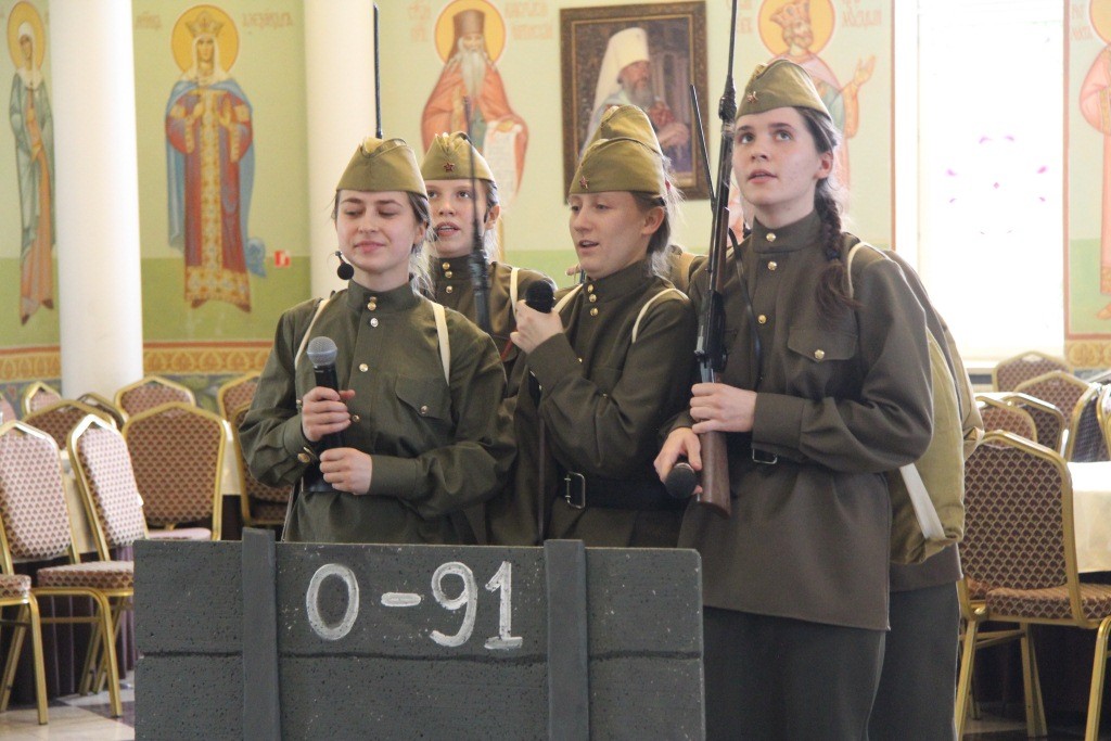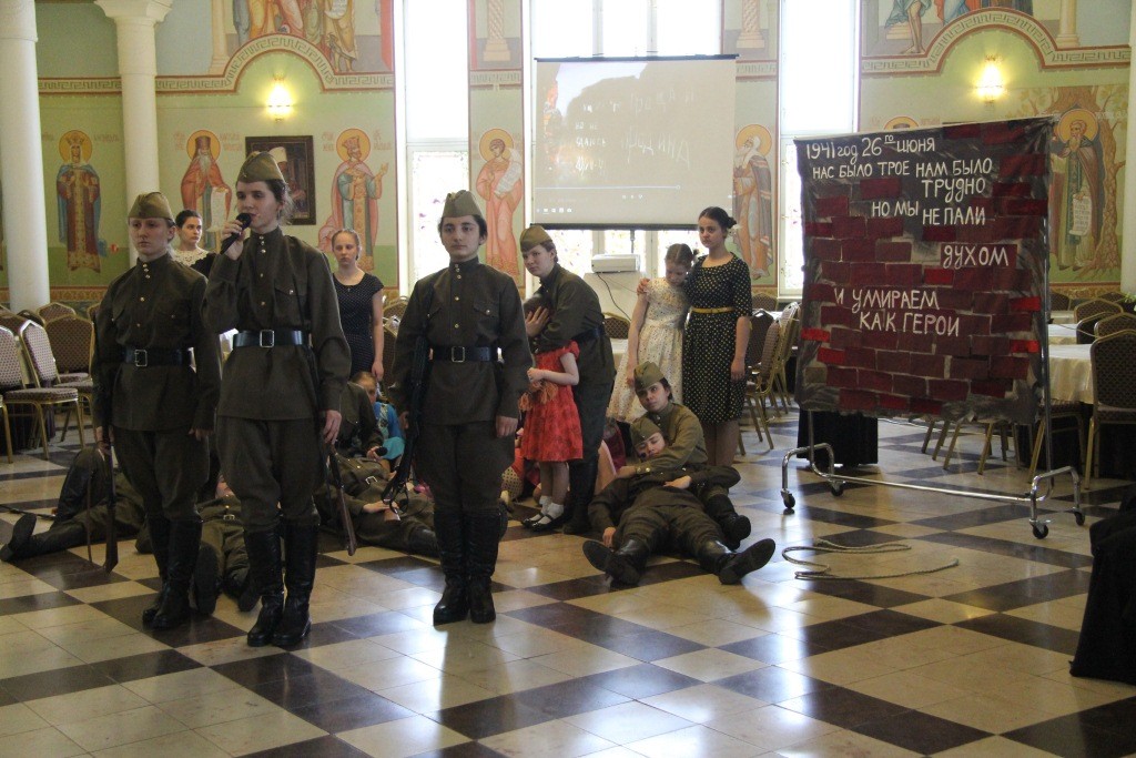 Концерт-спектакль дополнялся кинохроникой и чтением воспоминаний немецких солдат и офицеров, ставших настоящим свидетельством мужества и той самой евангельской любви советских солдат, и рассказывал о наиболее важных, трагичных и трогательных эпизодах Великой Отечественной войны. Героями спектакля стали: защитники Брестской крепости; подольские курсанты; жители блокадного Ленинграда; юные зенитчицы, погибшие, защищая Родину от диверсантов в тылу; танкист Дмитрий Корольков, герой Великой Отечественной войны и отец настоятельницы Свято-Никольского Черноостровского женского монастыря игумении Николаи (Ильиной); Виктор Балаев, будущий схиархимандрит Михаил, также герой-танкист, прошедший всю войну и по ее завершении вступивший в монашеское воинство и сегодня вместе с ангелами, воинами небесными, поддерживающий нас в духовной брани, той великой духовной войне, которая ведется до скончания века против Церкви Христовой, которой Господь обещал, что «врата ада не одолеют ее» (Мф. 16:18).