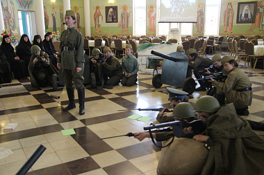 По завершении спектакля настоятельница Свято-Никольского Черноостровского женского монастыря игумения Николая произнесла слово о духовном смысле сложившейся в мире ситуации пандемии и самоизоляции, после которой прогнозируется всемирный экономический кризис. Напомнив слова схиархимандрита Михаила о том, что на вопросы, будет ли война и когда будет война, старец всегда отвечал, что война уже давно идет, матушка Николая пожелала насельницам обители быть настоящими наследницами мужества и истинной и самоотверженной евангельской любви, которой обладали наши защитники и герои, потому что именно это и стало основой для их Великой Победы и только это и может стать основой духовной победы и для монахов сегодняшних.