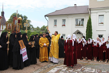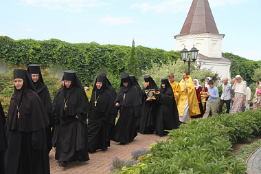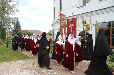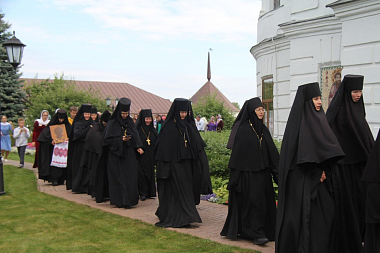 За праздничной Божественной литургией молились настоятельница Свято-Никольского Черноостровского женского монастыря игумения Николая (ильина) с сестрами и воспитанницами детского православного пансиона «Отрада», настоятельница Казанского девичьего монастыря Калуги игумения Анастасия (Мордмиллович) с сестрами, настоятельница Свято-Алексеевского женского монастыря Саратовской митрополии игумения Феодосия (Бессонова), настоятельница Серафимо-Покровского женского монастыря Кемеровской митрополии игумения Нектария (Седова), настоятельница подворья Свято-Успенского женского монастыря с. Елыкаево Кемеровской митрополии игумения Михаила (Файзулина), настоятельница Слободского Христорождественского женского монастыря игумения Феодосия (Дьячкова), настоятельница Иоанновского женского монастыря Саратовской митрополии игумения Еликонида (Лысенко), настоятельница Вольского Владимирского женского монастыря Саратовской митрополии игумения Макария (Семенова), настоятельница женского монастыря в честь Калужской иконы Божией Матери Калуги игумения Параскева (Ляхова), настоятельница Свято-Успенского Гремячего женского монастыря игумения Михаила (Осипова) и другие настоятельницы женских скитов и подворий Калужской митрополии с сестрами.