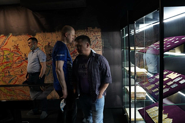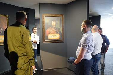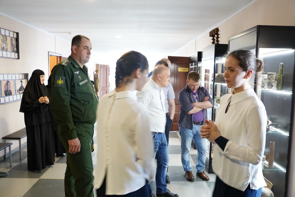 В группу гостей вошли командир воинской части в поселке Кудиново близ Малоярославца, месте исторических боев за Ильинские рубежи, и представители Штаба космических войск из Москвы.
