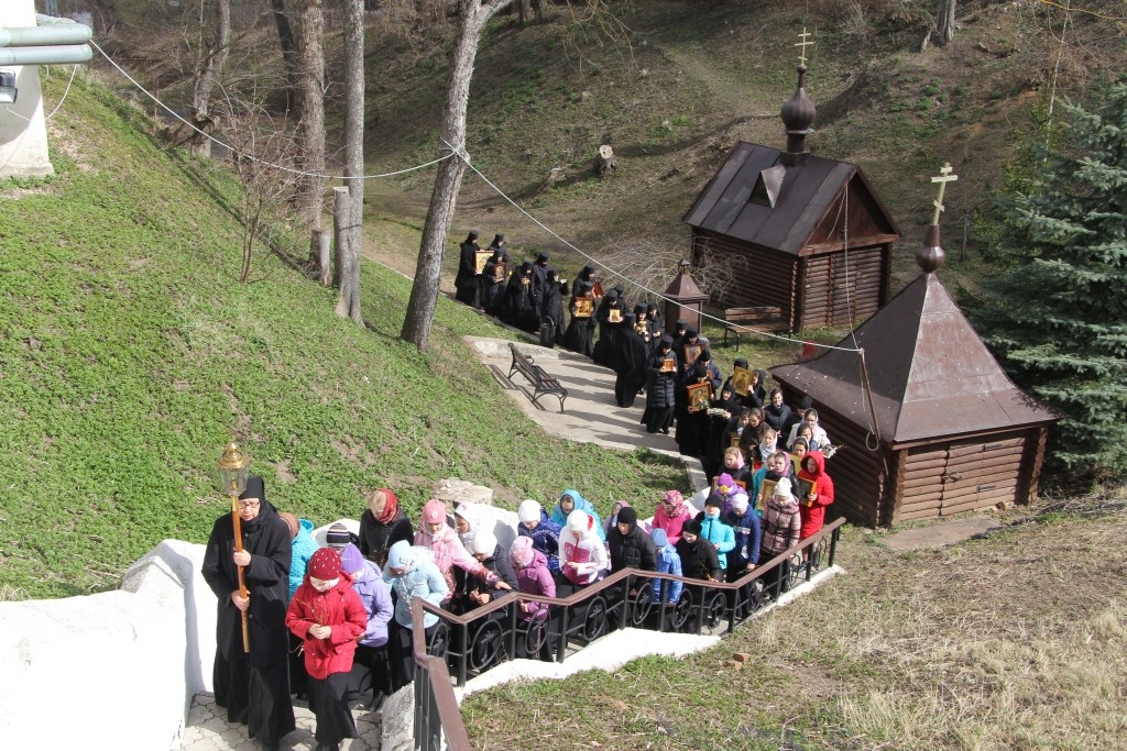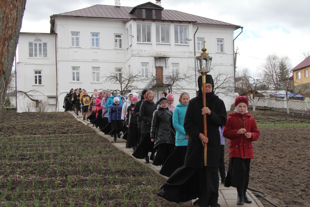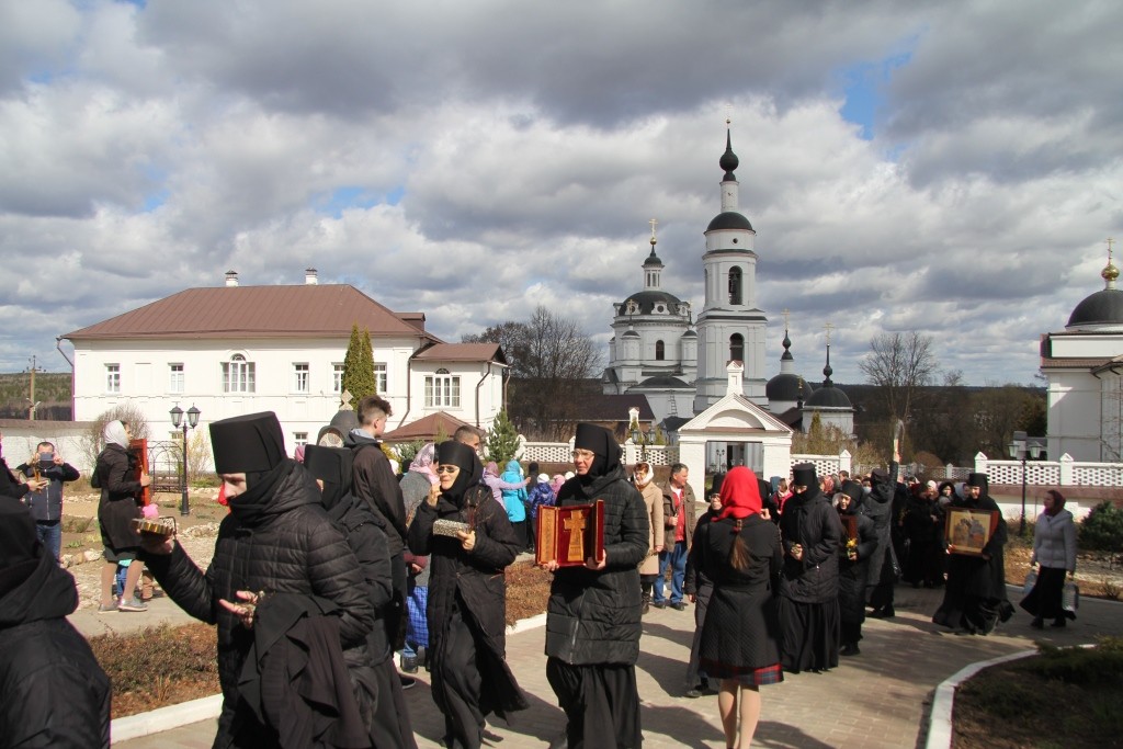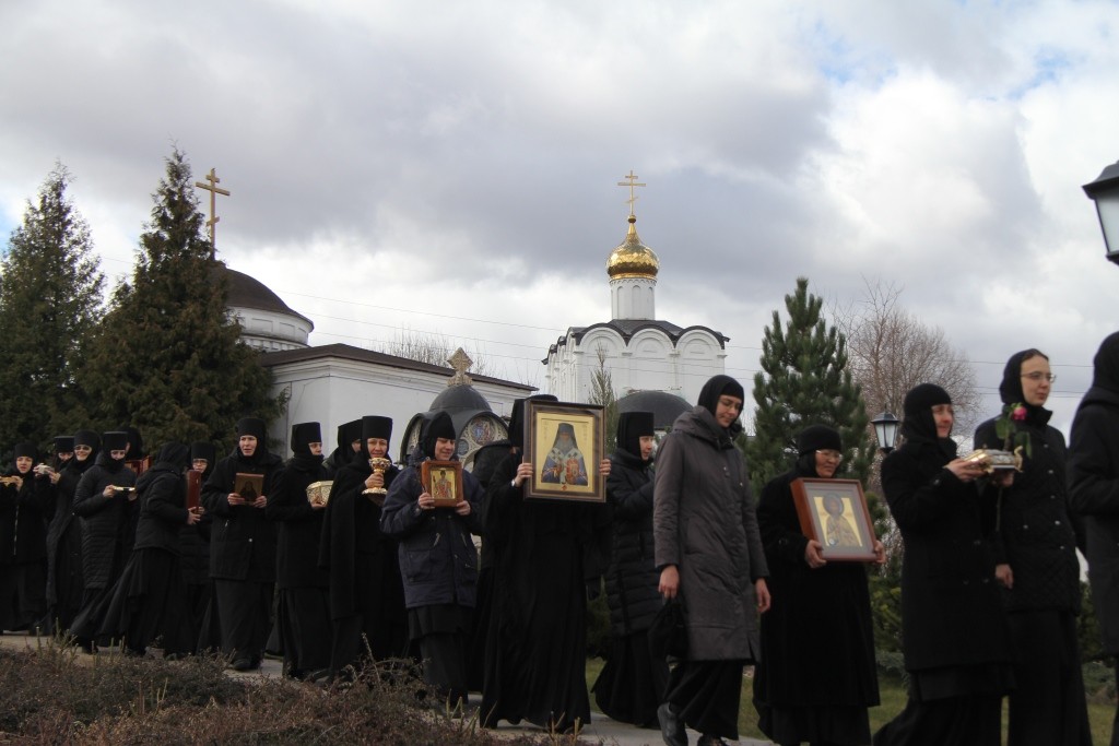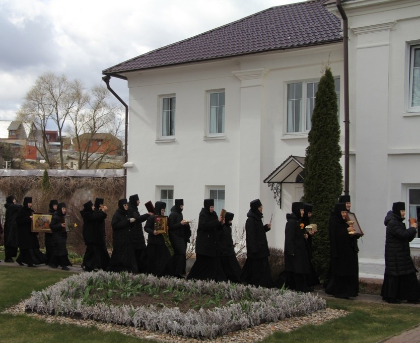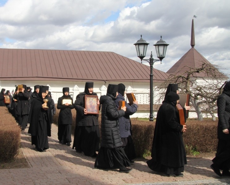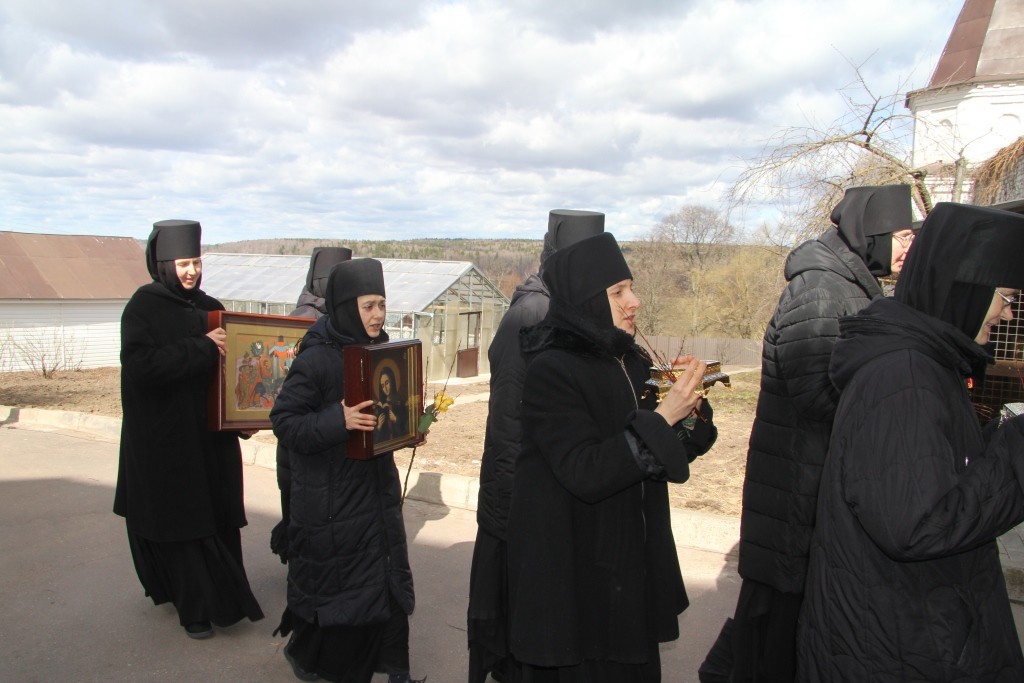 12 апреля 2020 года, в Вербное воскресенье, крестный ход получился особенно масштабным, так как к сестрам монастыря присоединились воспитанницы детского православного пансиона «Отрада». После окропления святой водой всей территории монастыря, включая хозяйственный двор, приют «Отрада», источник святителя Николая в овраге у стен обители, крестный ход завершается в Никольском соборе коленопреклоненным чтением молитвы во время распространения вредоносного поветрия.