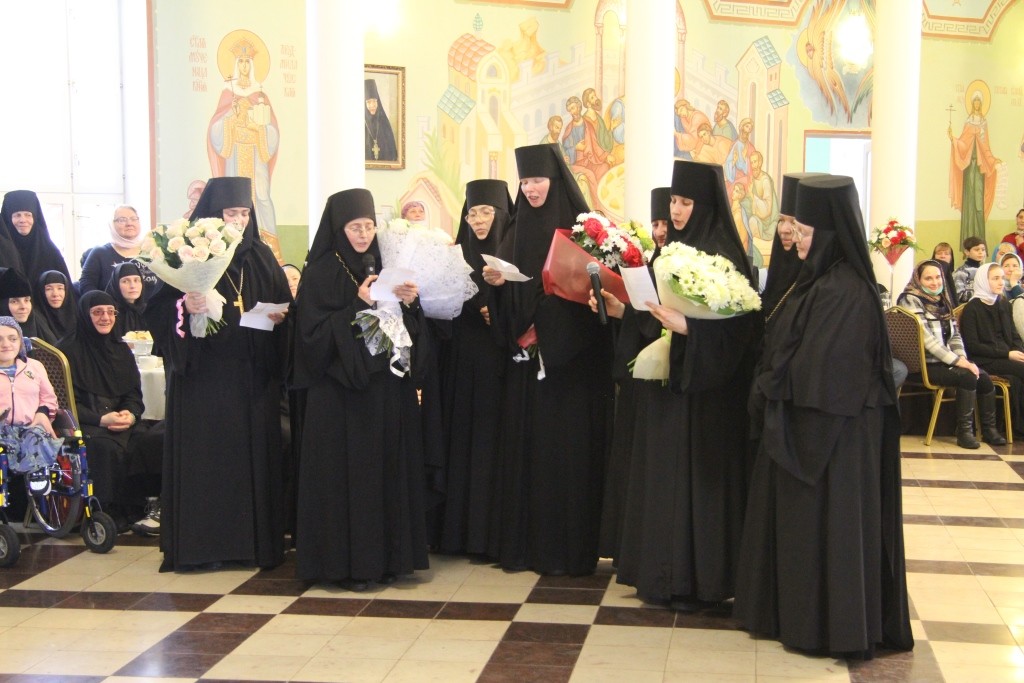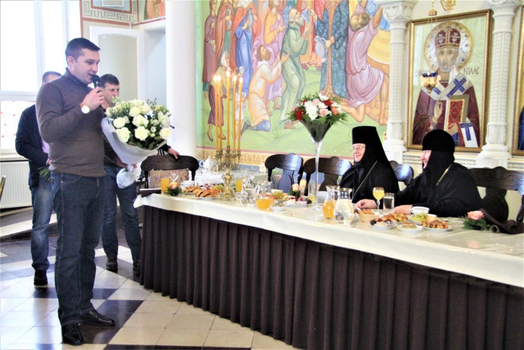 Присутствующих в зале большой трапезной с престольным праздником обители поздравило руководство городской и районной администрации: Глава Администрации Малоярославецкого района В. В. Парфенов, Глава Малоярославецкого района М. А. Брук и Глава Администрации г. Малоярославца М. А. Крылов. Также всех собравшихся поздравил заместитель начальница Центра подготовки космонавтов им. Ю. А. Гагарина Ю. И. Маленченко – от себя и от космонавтов-испытателей, посещавших Свято-Никольский Черноостровский монастырь, запомнивших и оценивших гостеприимство настоятельницы и сестер обители. Среди передавших свои поздравления космонавтов Ю. И. Маленченко назвал Героя РФ В. Г. Корзуна, Героя РФ В. С. Золотухина, Героя РФ Ю. П. Гидзенко, Героя РФ В. И. Токарева, героя РФ Олега Артемьева.