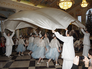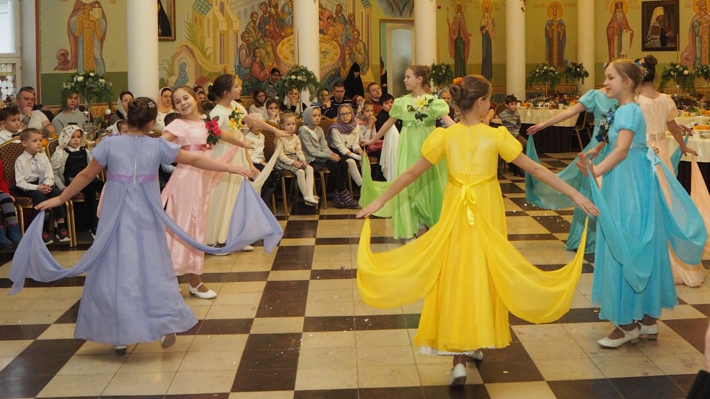 По окончании Божественной литургии в Никольском соборе монастыря, где довелось присутствовать многим из участников праздника, в большой трапезной был организован праздничный обед, завершившийся представлением по сказке Г.-Х. Андерсена «Снежная королева».