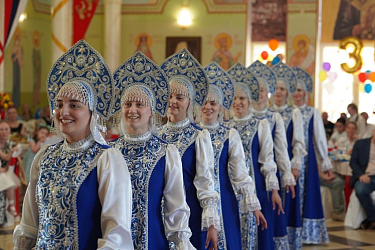 Наверное, такого большого хора на площадке большой трапезной пансиона «Отрада» еще не было, ведь здесь собрались выпускницы разных лет, которые в 2011–2019 годах представляли русскую духовную культуру в разных странах Европы и СНГ, выступали в более чем 50 городах России и зарубежья. Эти девочки, уже взрослые, мамы, когда-то выступали в золотом зале Венской филармонии и концертных залах в Берлине и в Каннах, в Белграде и Афинах, в Будапеште и Софии, в Гамбурге и Зальцбурге. Они вновь, как в детстве, вышли петь, и уже нынешние воспитанницы «Отрады» выносили им подарки – сувениры, архивные записи их концертов, спектаклей, репортажей о поездках на гастроли и на отдых. Есть о чем вспомнить, что показать уже своим детям.