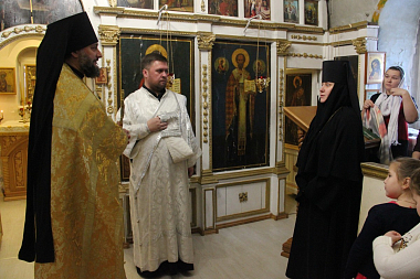 По окончании Божественной литургии служащее духовенство поздравило настоятельницу монастыря игумению Алексию (Бажину) с 20-летием монашеского пострига, вручив ей богородичную просфору и возгласив «Многая лета».
