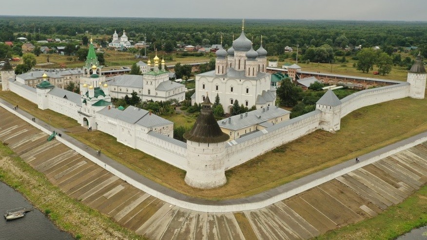 С 1651 по 1667 годы были возведены в камне все монастырские строения, дошедшие до наших дней. По мнению исследователей, зодчим монастырского ансамбля, возможно, был каменных дел подмастерье Максим Апсин. В 1677 году было завершено строительство мощной монастырской крепости, поставленной для защиты монастыря и ярмарки.