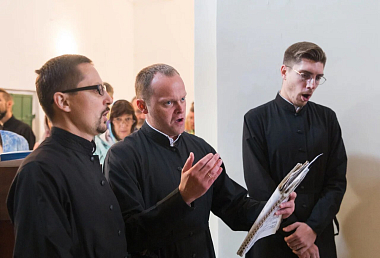 Церковные песнопения исполнили мужской хор Свято-Троицкого Ипатьевского монастыря г. Костромы и архиерейский хор Костромской епархии.