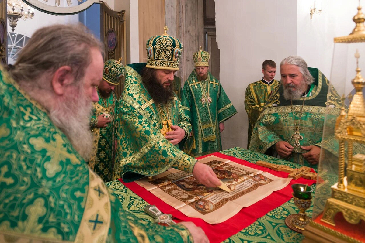 Затем было совершено молебное славление преподобному Макарию Унженскому перед ракой с его святыми мощами.