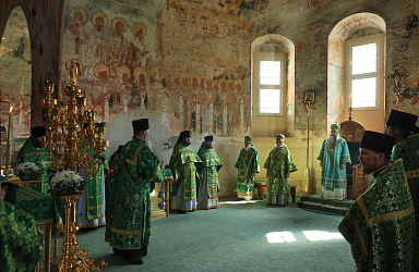 По данным правоохранительных органов, на богослужении в Свято-Троицком Макарьевском Желтоводском женском монастыре молились 2,5 тысячи паломников.