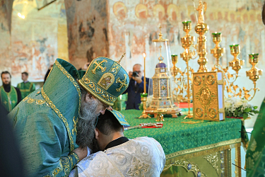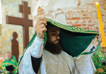 В ходе богослужения состоялась священническая хиротония диакона Артемия Маликова (Лысковская епархия).