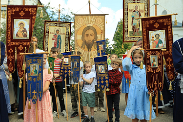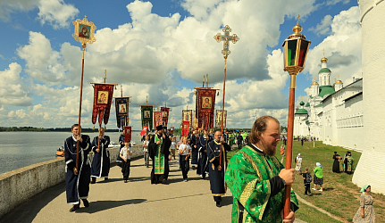 После Божественной литургии был совершен крестный ход вокруг стен монастыря с преднесением ковчега с честной главой и образом преподобного Макария.