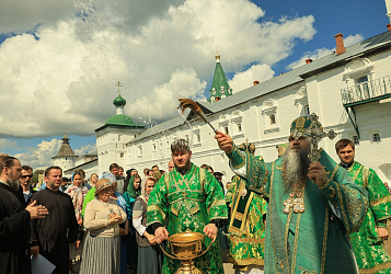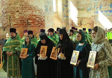 После завершения крестного хода в Троицком храме игумения Нина поблагодарила митрополита Георгия и Преосвященных архиереев за совершенное богослужение и преподнесла каждому икону Божией Матери «Макарьевская» и заздравную просфору.