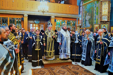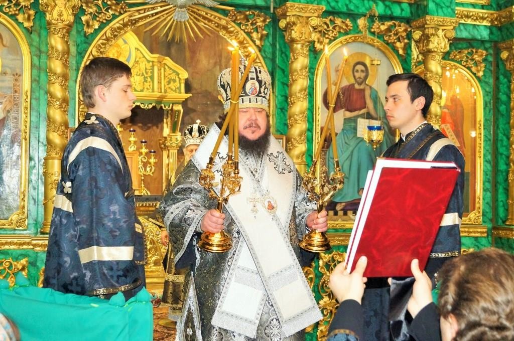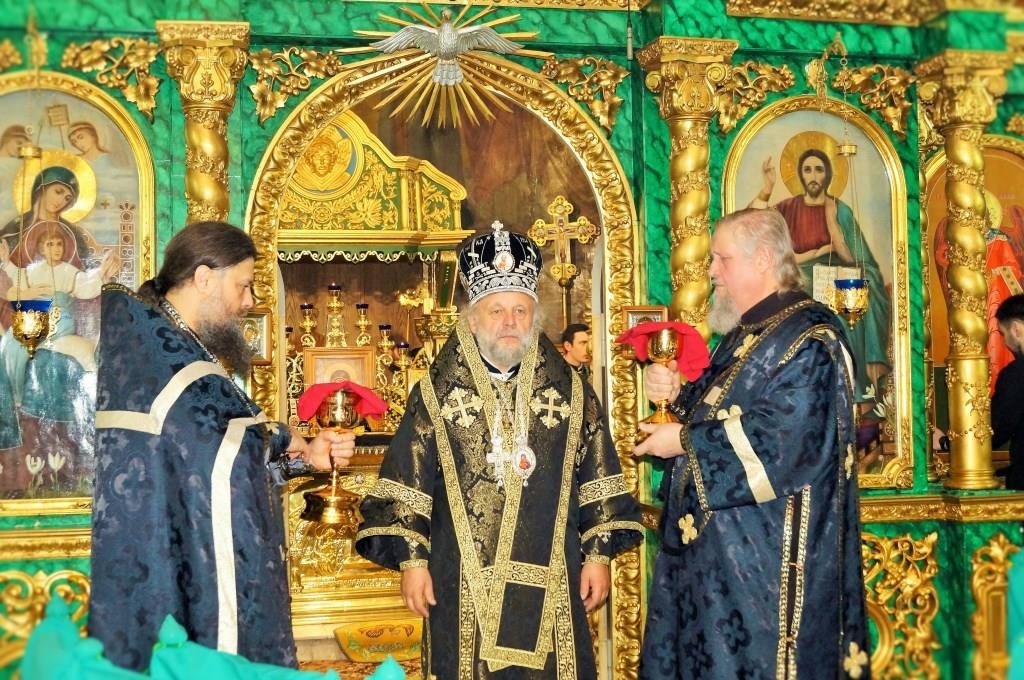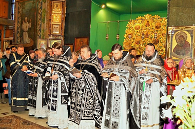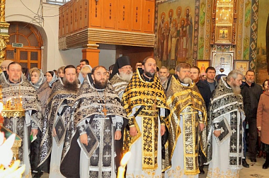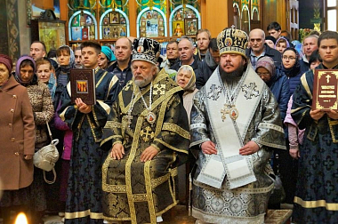 За богослужением молились отцы благочинные, наместники монастырей и священнослужители епархии.
