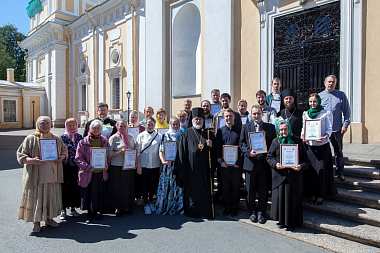 Также епископ Назарий вручил сертификаты выпускникам Лаврских курсов церковных чтецов. Поздравив выпускников, Его Преосвященство отметил важность отношения к текстам, читаемым за богослужениями. «Пусть каждое слово, которое вы читаете за богослужением, будет глубоко осмысленно вами, чтобы через ваше чтение и понимание эти слова стали близкими и понятными молящимся с вами», – отметил владыка.