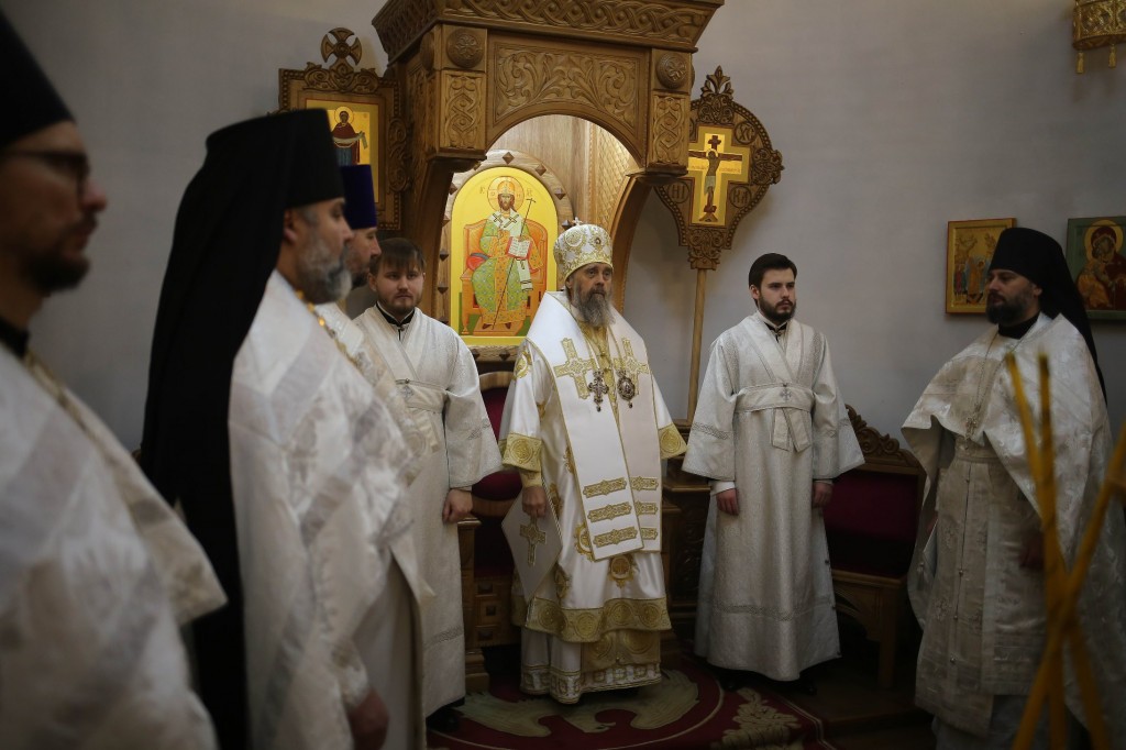 На сугубой ектении были вознесены молитвы о мире на Украине и Ближнем Востоке, а также о сохранении единства святого православия.