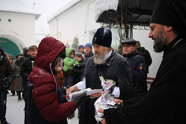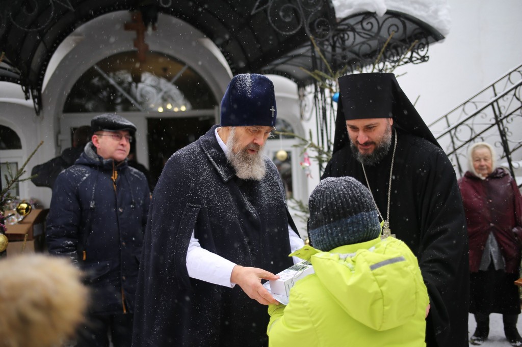 Поздравить детей с праздником пришел митрополит Тульский и Ефремовский Алексий, пожелавший участникам праздника жить в любви к Богу, сохраняя в сердцах тепло и радость Рождества: «Есть замечательная и добрая традиция украшать монастырские елочки, которые радуют нас зимой и летом одним зеленым цветом, игрушками, но не купленными в магазине, а нашими руками и творчеством осуществленные, получая из этого добрый опыт, чтобы затем укрепить его в серьезный жизненный навык о том, что "блаженнее давати, нежели принимати" (Деян. 20:35), чтобы солнышко человеческого тепла никогда не гасло в наших сердцах и чтобы его радостноносные лучи несли свет жизни, братолюбия, мира и согласия в окружающий нас с вами мир».
