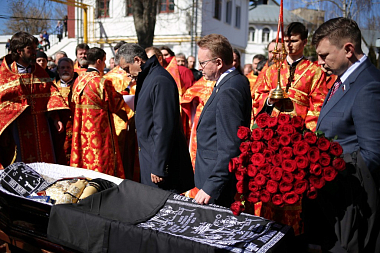 «Не верится, что мы провожаем в последний путь отца Лавра, – сказал глава Новомосковска Анатолий Пророков. – Это наш большой друг, удивительный и неповторимый человек. Осознавая, что мы больше не увидим его добрых глаз, не внемлем его мудрым советам и не услышим веселых и поучительных рассказов о жизни, мы в то же время понимаем, что с нами остается великий памятник, созданный его руками, – Свято-Успенская обитель.