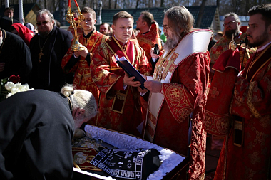 Чин отпевания и погребения совершил митрополит Тульский и Ефремовский Алексий, просивший Всевышнего упокоить в селениях праведных душу архимандрита Лавра, верного раба и служителя Своего, прошедшего по страданиям со Спасителем и встретившим Пасху с воскресшим Господом.