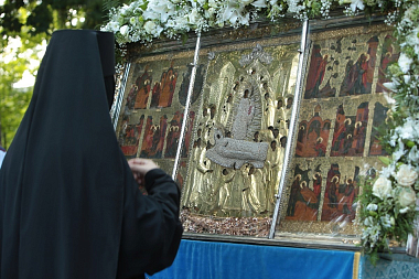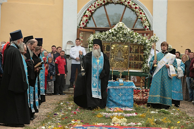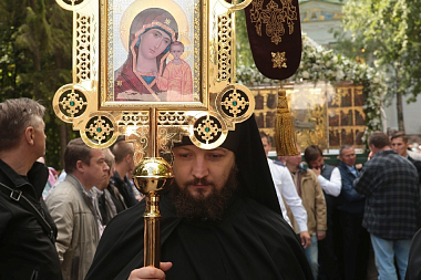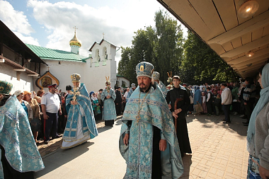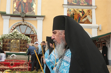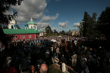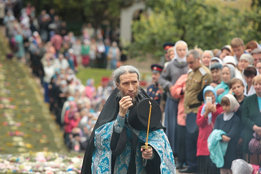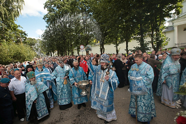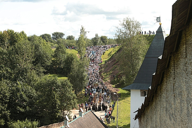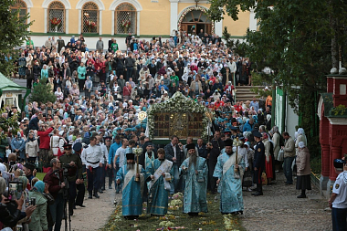 По окончании богослужения состоялся крестный ход вокруг обители с чудотворной иконой Успения Божией Матери, в котором приняли участие губернатор Псковской области А.А. Турчак и другие официальные лица, а также многочисленные паломники.