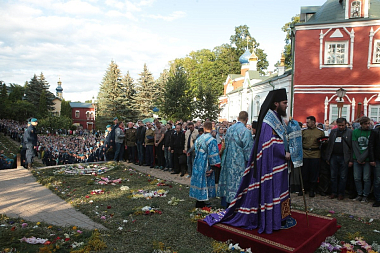 В этот день в обители были отслужены три Божественные литургии в Сретенском, Успенском и Михайловском храмах.