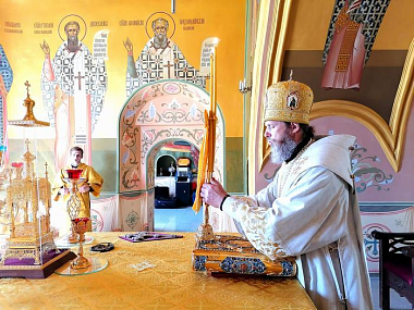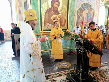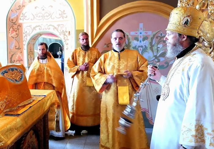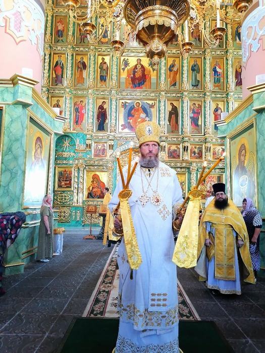 В Успенском храме обители Его Преосвященству сослужили клирики монастыря.