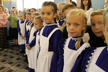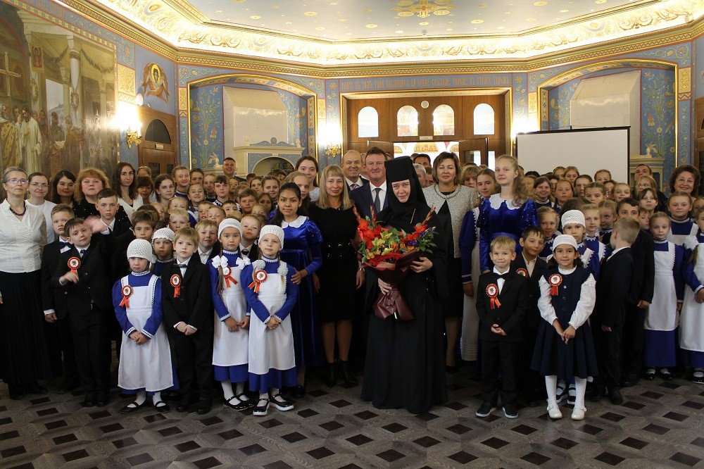За богослужением молились настоятельница обители, директор школы игумения София (Силина) с сестрами, глава Московского района Владимир Николаевич Ушаков, председатель Попечительского совета школы Анатолий Александрович Турчак, представители вузов, учащиеся, родители, педагоги и попечители школы.