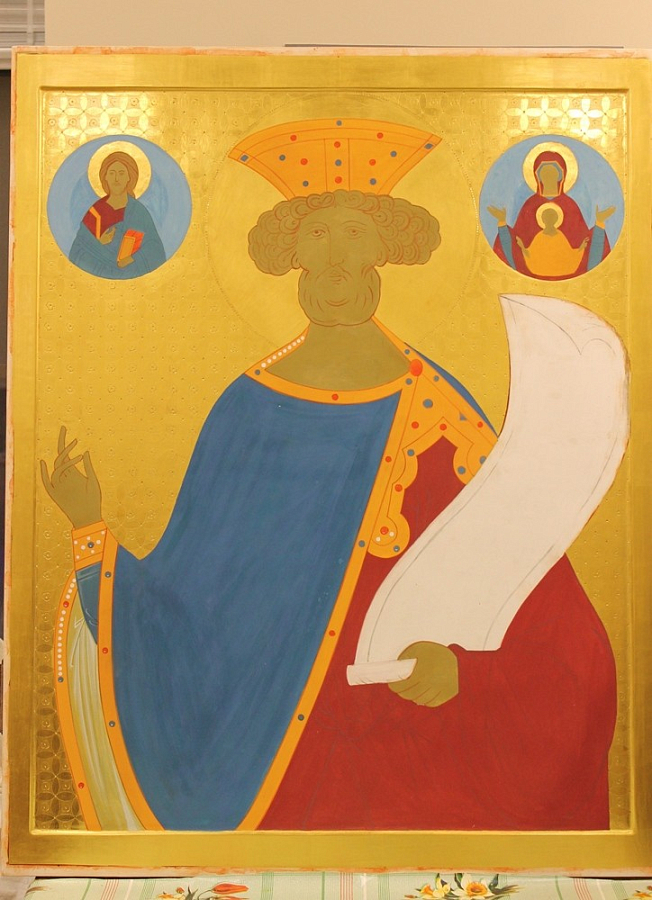 В настоящее время сестры дописывают большую икону Псалмопевца с орнаментом на золотом фоне.