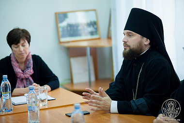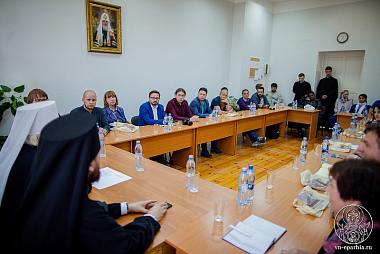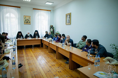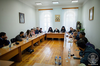 В Свято-Юрьевом монастыре состоялась встреча митрополита Льва со студентами и сотрудниками фонда «Brot für die Welt» на тему «Монашество в России и Новгородской епархии»