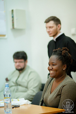 По окончании встречи студентам и сотрудникам фонда раздали иконки великомученика Георгия Победоносца и брошюры с информацией о Юрьевом монастыре.