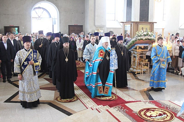 В завершение богослужения митрополита Варнаву приветствовал епископ Игнатий. Затем глава Чувашской митрополии поздравил Преосвященнейшего Игнатия, духовенство, матушку игумению и паломников с престольным праздником обители и обратился к собравшимся с архипастырским словом, в котором пожелал каждому покровительства и заступничества Пресвятой Богородицы.