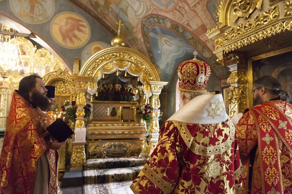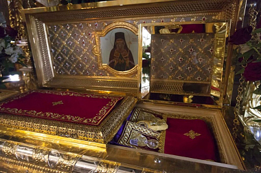 По окончании Литургии Его Высокопреосвященство вместе с сослужившим духовенством совершил перед ракой с мощами святителя молебное пение.