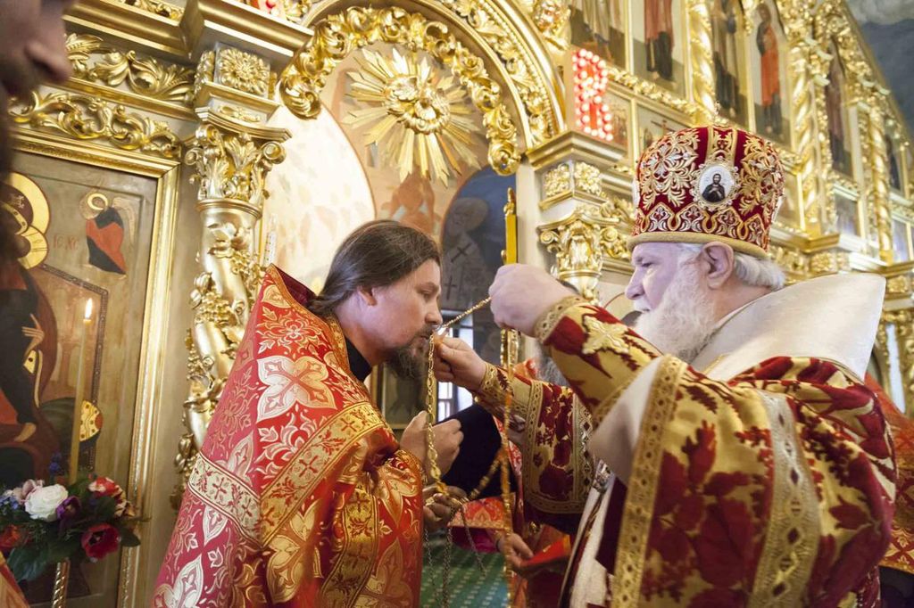 За богослужением глава Ярославской митрополии удостоил клириков обители иерея Иоанна Гуляева и иерея Александра Стрельникова права ношения наперсного креста золотого цвета.