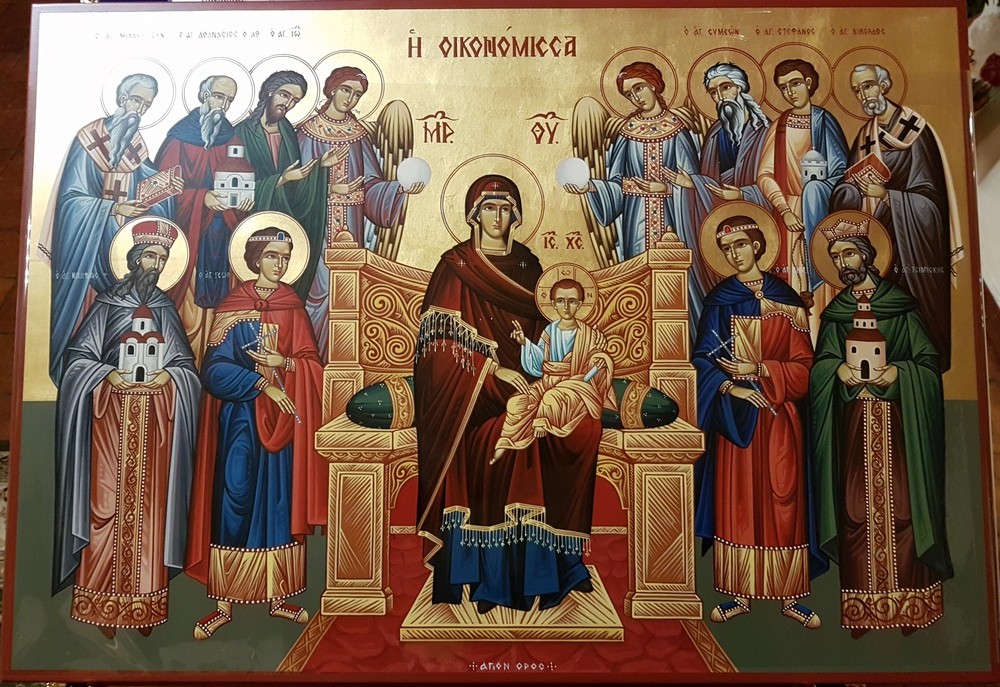 Чудотворная икона Божией Матери «Экономисса», или «Домостроительница», находится в Лавре святого Афанасия на Горе Афон. Вскоре после своего основания монастырь пришел в упадок и монахи из-за голода покинули монастырь. Остался только св. Афанасий, но и он в скором времени был вынужден оставить обитель. Когда старец отошел недалеко от обители, он встретил Божию Матерь, Которая сказала ему: «Возвращайся обратно. С этого времени я Сама буду следить за всеми хозяйственными делами монастыря и вы больше ни в чем не будете иметь нужду».