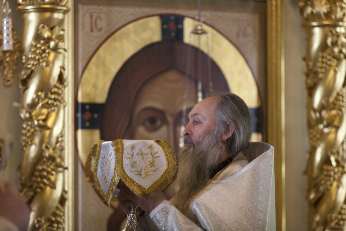 По окончании Литургии владыка Вадим поздравил всех молящихся с праздником Вознесения Господня: