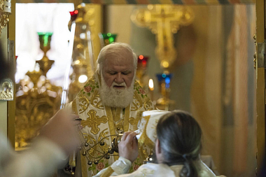 Накануне Его Высокопреосвященство возглавил всенощное бдение в данной обители.